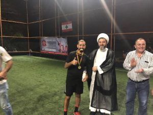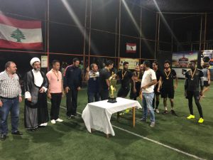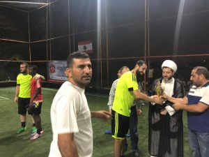 في نهاية المباريات وزعت المداليات على اللاعبين والفرق الفائزة في المركزين الاول والثاني وتسلم كأس الدورة كابتن فريق الاتحاد حيث قدمه له الشيخ علي صعب العاملي والسيد هاشم حسين والشباب المنظم للدورة بحضور وفدٍ من الجالية تمثل بالسيدين محمد فرشوخ وكمال شاهين