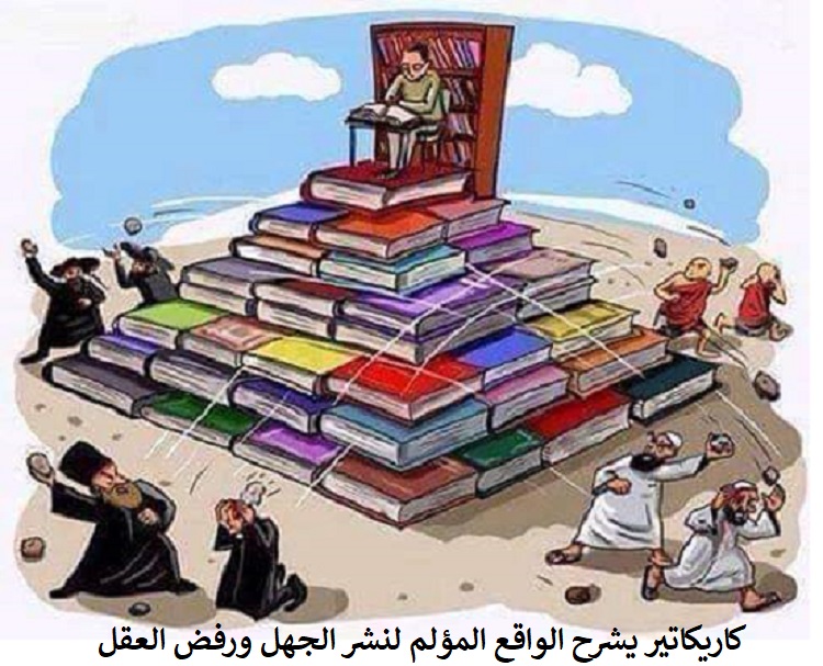 كاريكاتير يشرح الواقع المؤلم لنشر الجهل ورفض العقل